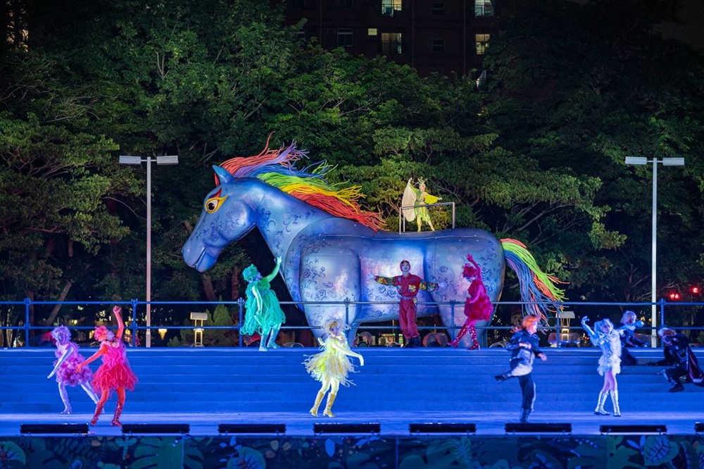 The “County Government Stage” brings together culturally representative groups from Taiwan, Japan, and France, including Taiwan’s Paper Windmill Theatre performing the classic “The Rain Horse,” the “2026 Taiwan-Japan Friendship: Aomori Nebuta Comes to Chiayi,” and France’s Planète Vapeur mechanical beast circus “Flying White Horse Show.” These large-scale outdoor performances immerse audiences in an international artistic atmosphere.
