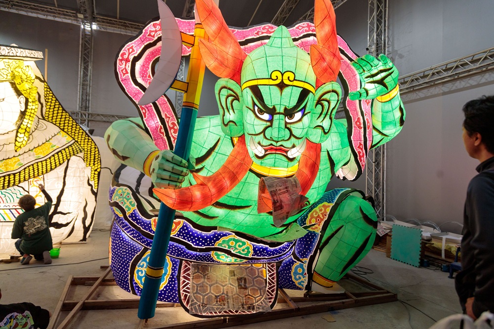 The Cultural and Tourism Bureau explained that the Nebuta masters are presenting the complete process on-site—from building the framework, pasting washi paper, to painting and coloring—bringing international-level artworks to life and infusing the 2026 Taiwan Lantern Festival with profound cultural exchange.