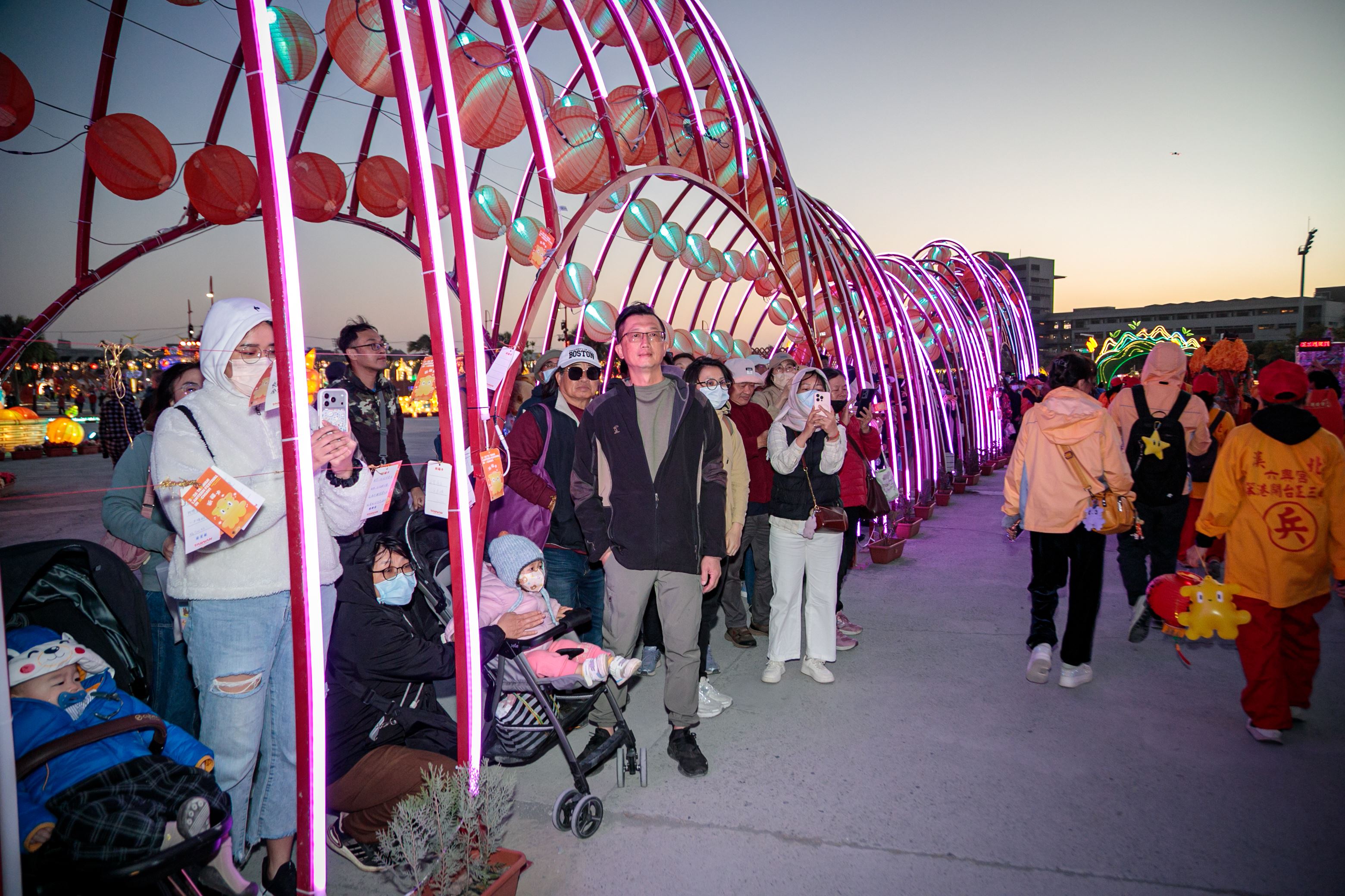媽祖隨後走入新住民燈區及社規師燈區,漫步燈區、體驗熱鬧氛圍,沿途信眾熱情揮手,向媽祖打招呼。