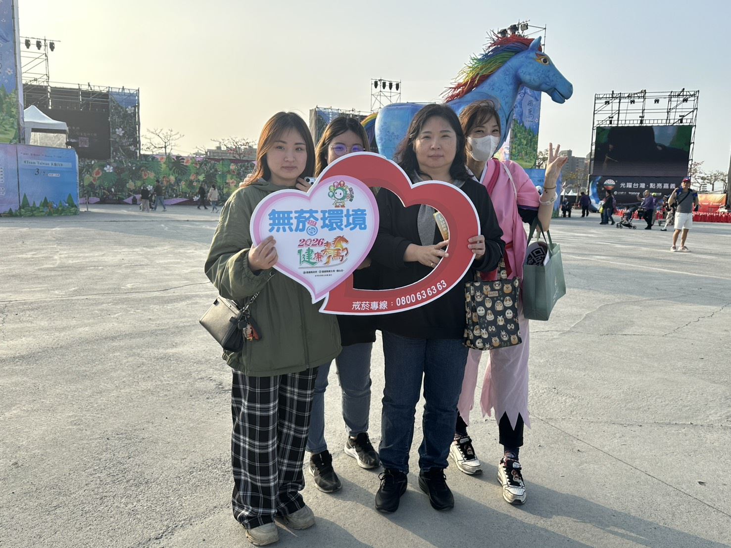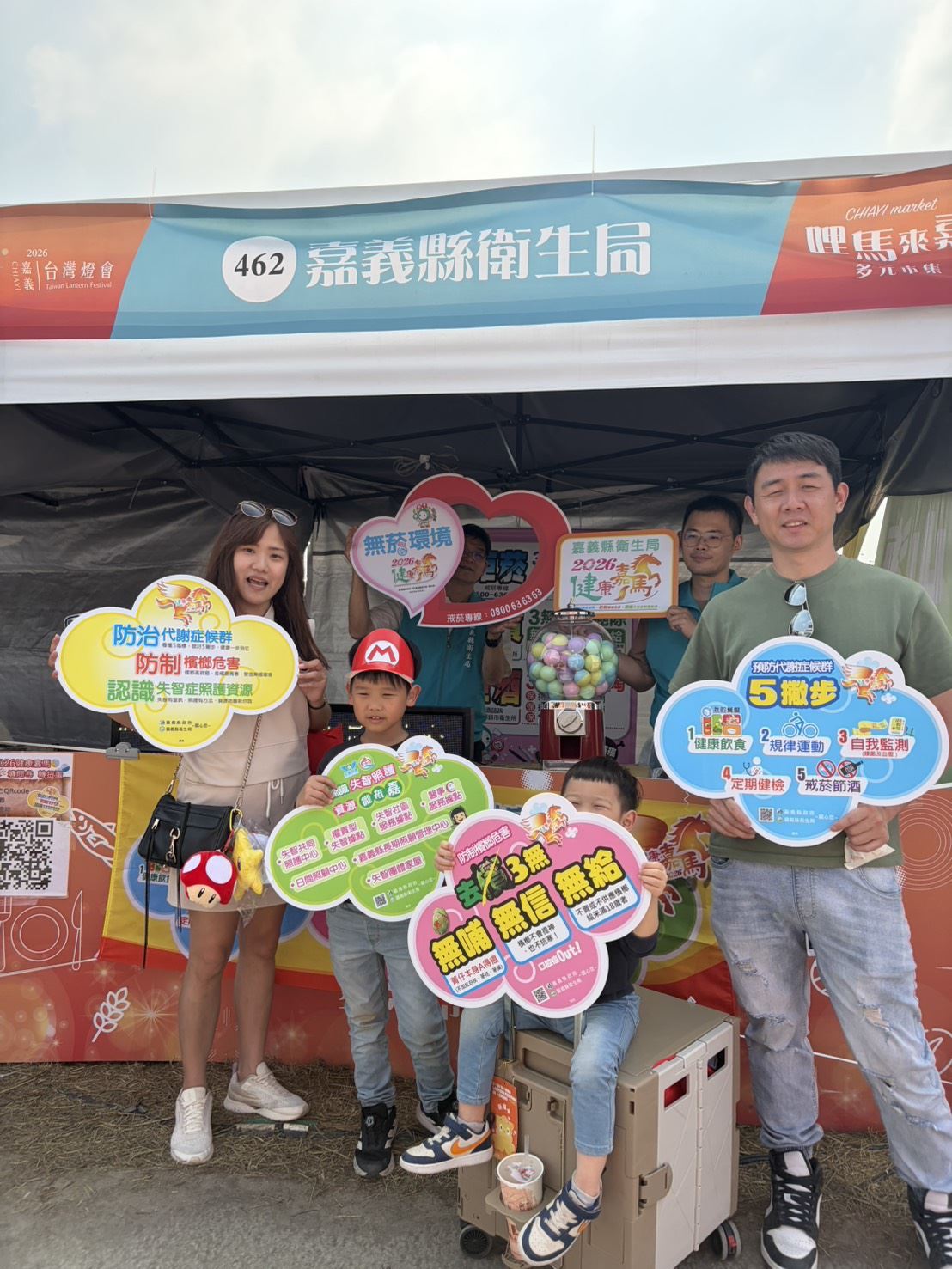嘉義縣衛生局於「2026台灣燈會在嘉義」期間推出「無菸環境健康嘉馬」菸害防制宣導系列活動,透過設置指定吸菸區、Cosplay走動式互動宣導及戒菸服務推廣等多元方式,營造友善舒適的無菸賞燈環境,讓民眾安心參觀燈會,同時降低二手菸與三手菸暴露風險。
