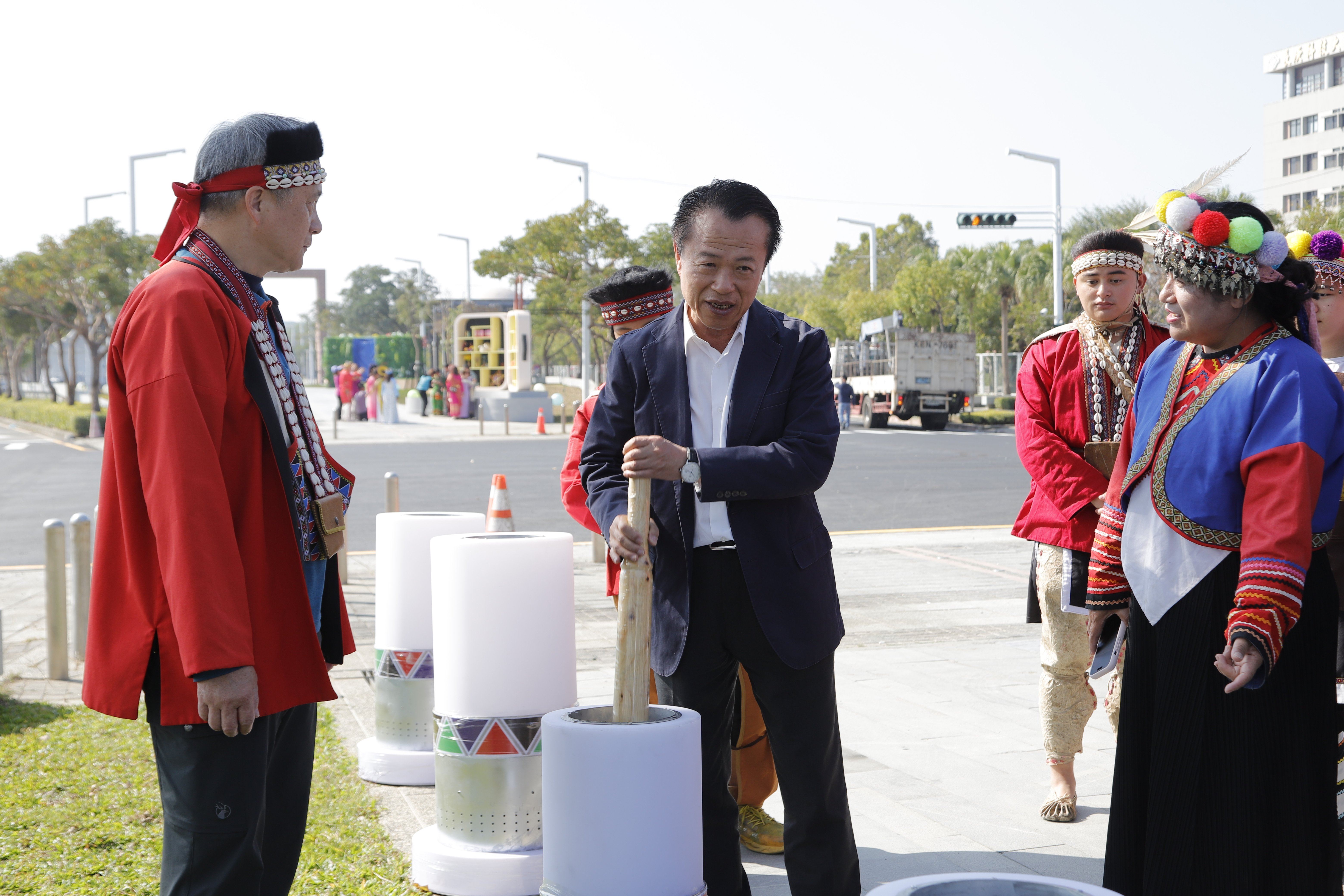 嘉義縣長翁章梁12日視察2026台灣燈會太子大道上的三大燈區,包括社規師燈區展現地方的創作能量與合作精神;新住民燈區「新嘉鄉故事」呈現文化融合的多元樣貌;鄒族燈區「神之境」則將阿里山戰祭神話搬進現實,傳遞一個個在地的動人故事。