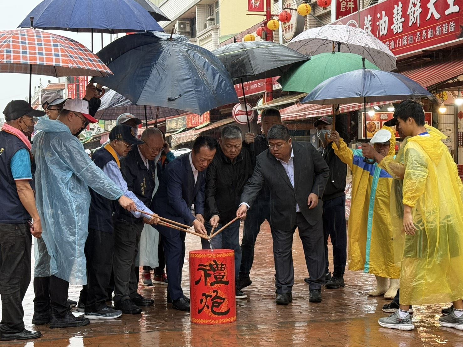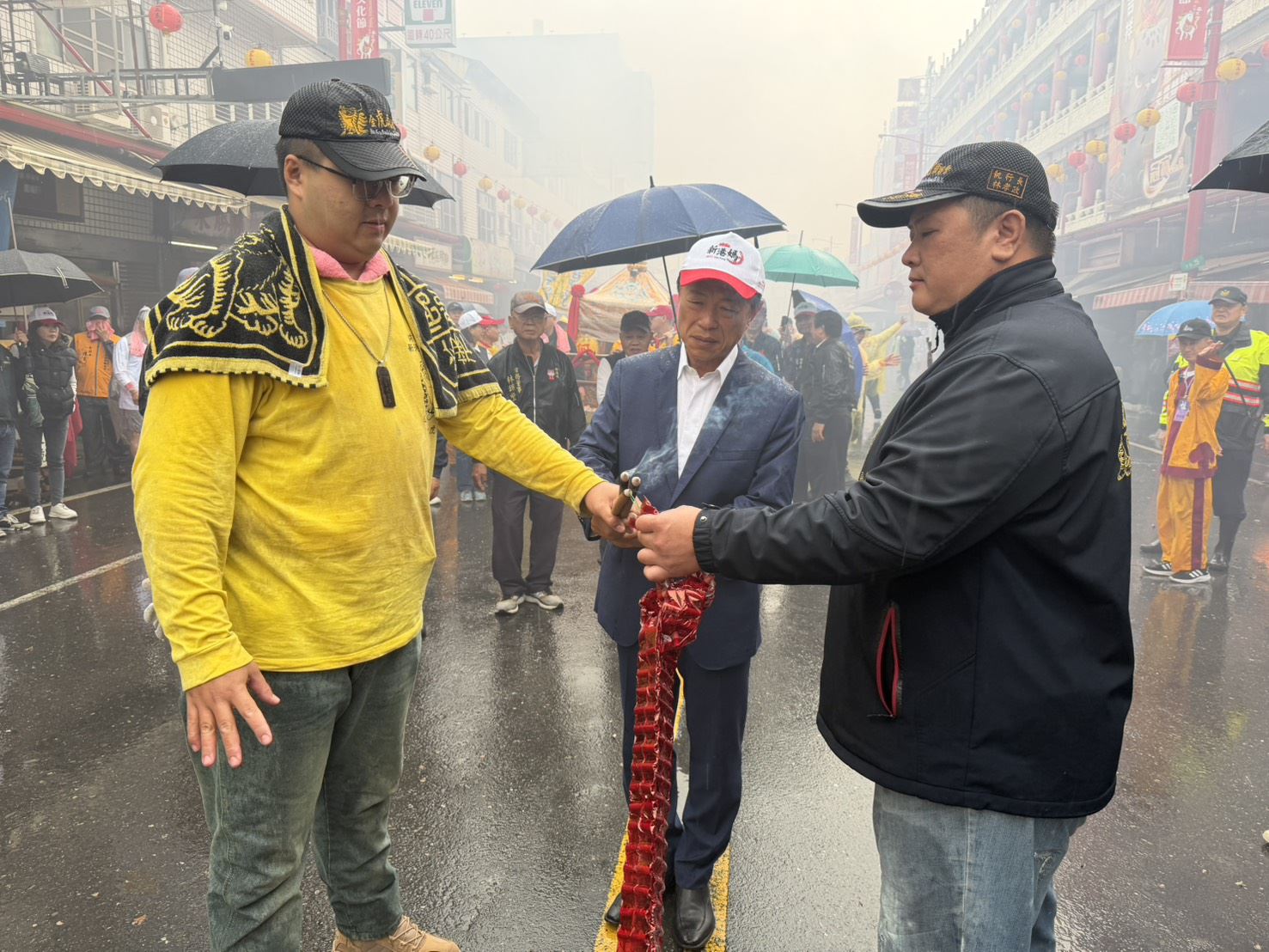 翁縣長與立法委員蔡易餘等人上午前往奉天宮參與起駕,點起馬砲後入廟團拜,並在9點準時「請媽祖上轎」,一行人起駕出發。