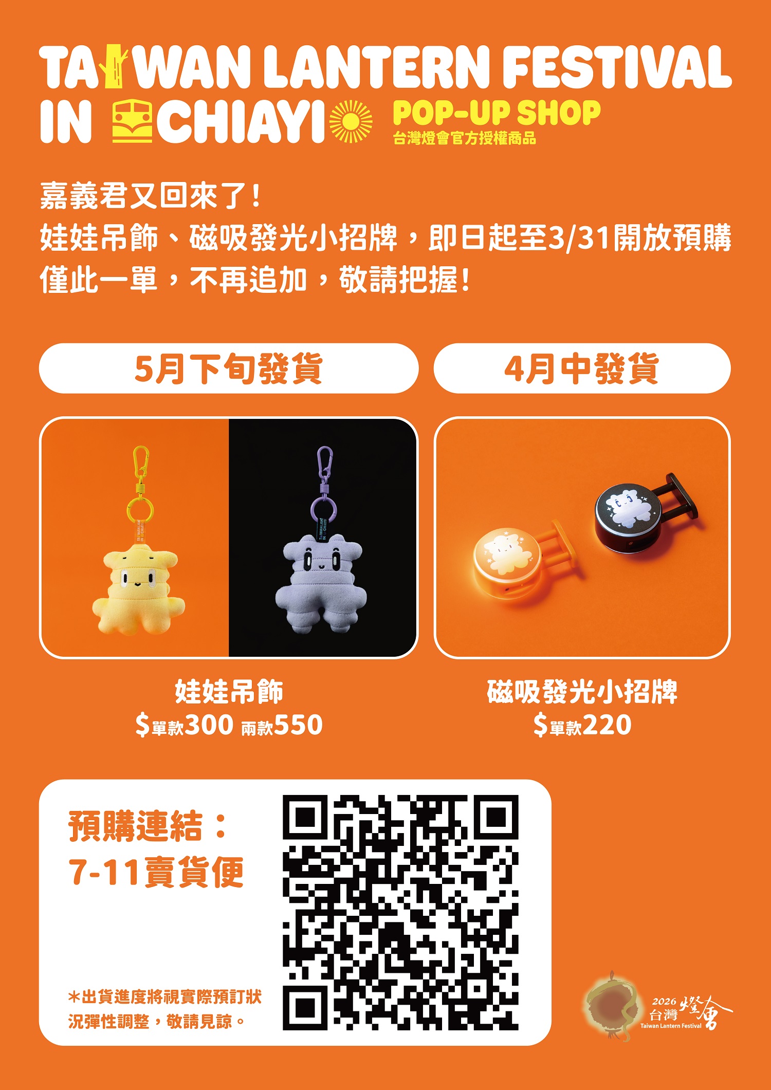 嘉義君又回來了!娃娃吊飾、磁吸發光小招牌,即日起至3/31開放預購 僅此一單,不再追加,敬請把握!