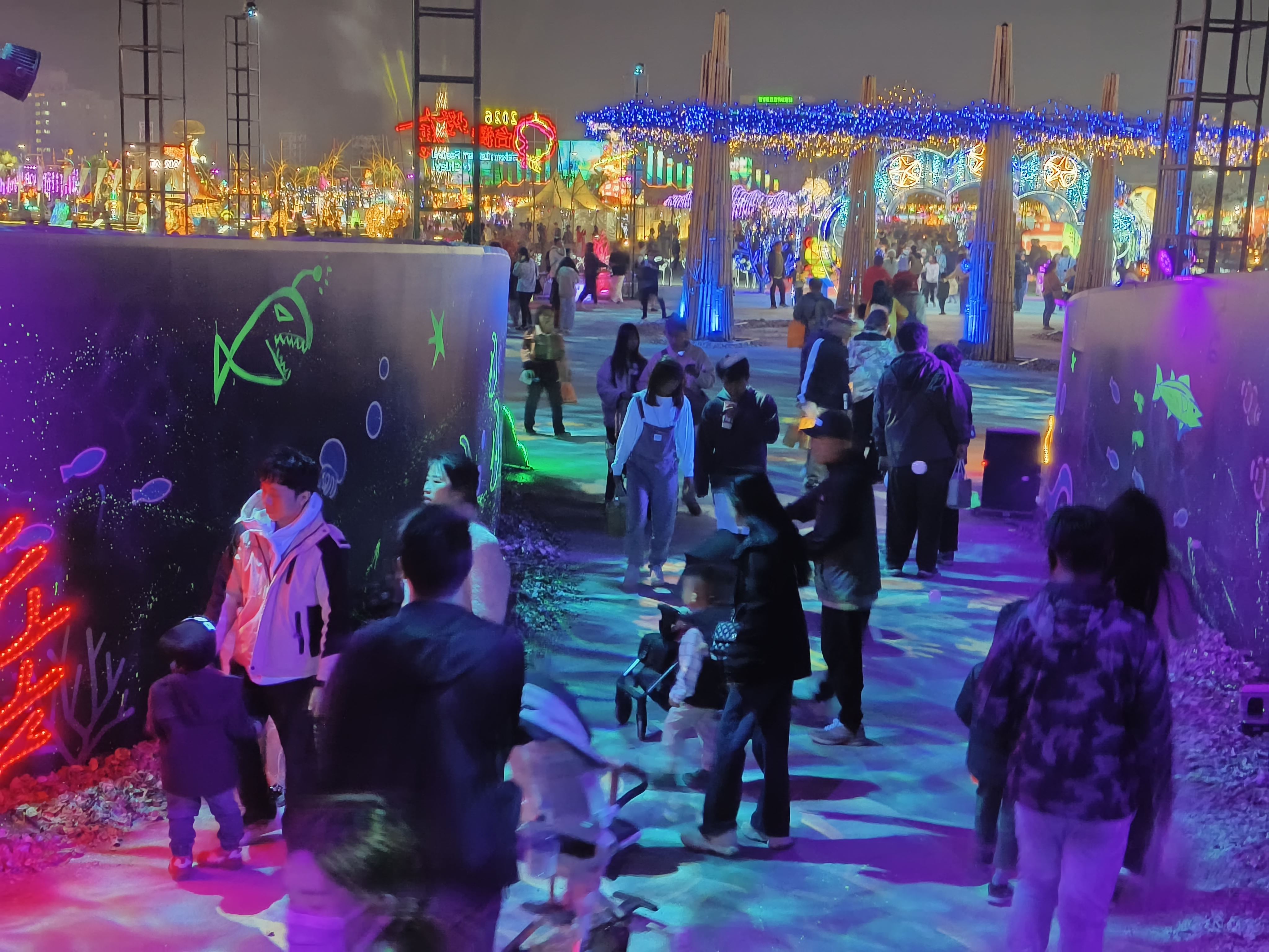 台中林小姐說,展區使用大量蚵殼及海廢回收品做成的裝飾覺得很驚豔,對於「蚵殼山」印象最深刻。而拍攝過各地許多燈會的網美KOL莫莉看到地上好多彩色的小魚兒在腳下穿梭感到很興奮,她說這是非常用心設計製作的燈區,值得推薦大家一起來欣賞。