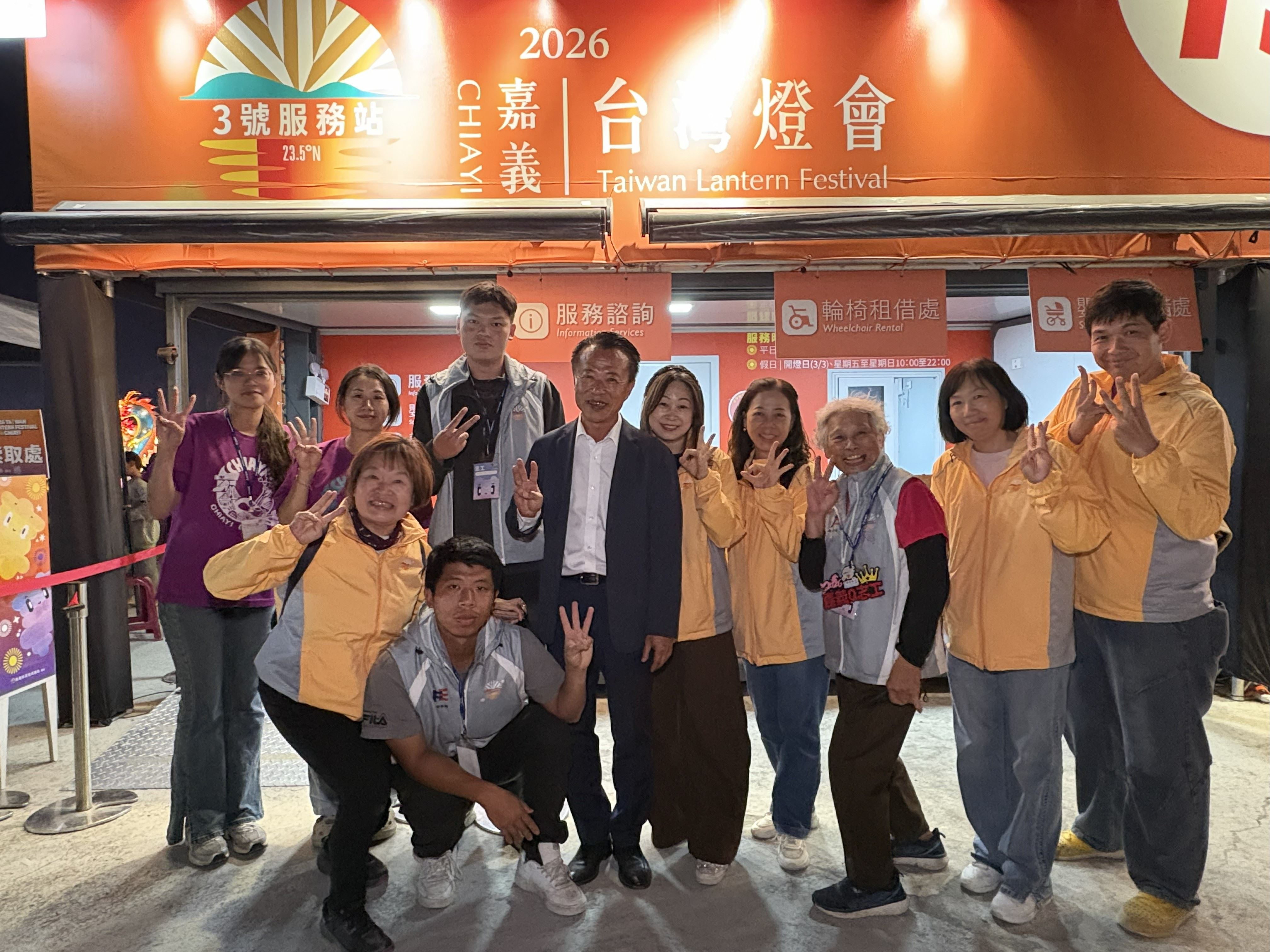 翁章梁縣長逐一走訪各服務據點,親自向第一線服務人員致意,感謝大家在燈會期間堅守崗位,確保活動順利進行。