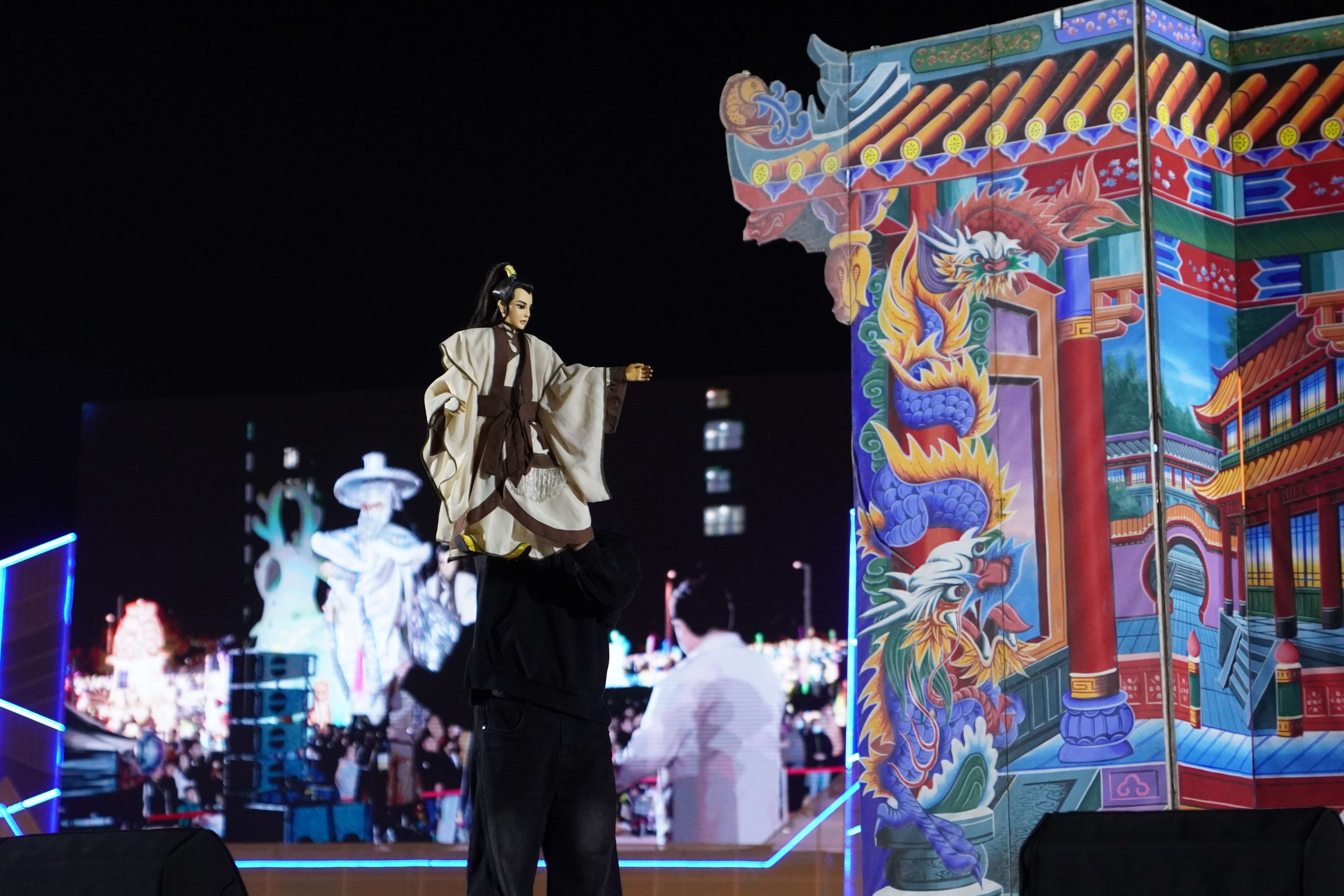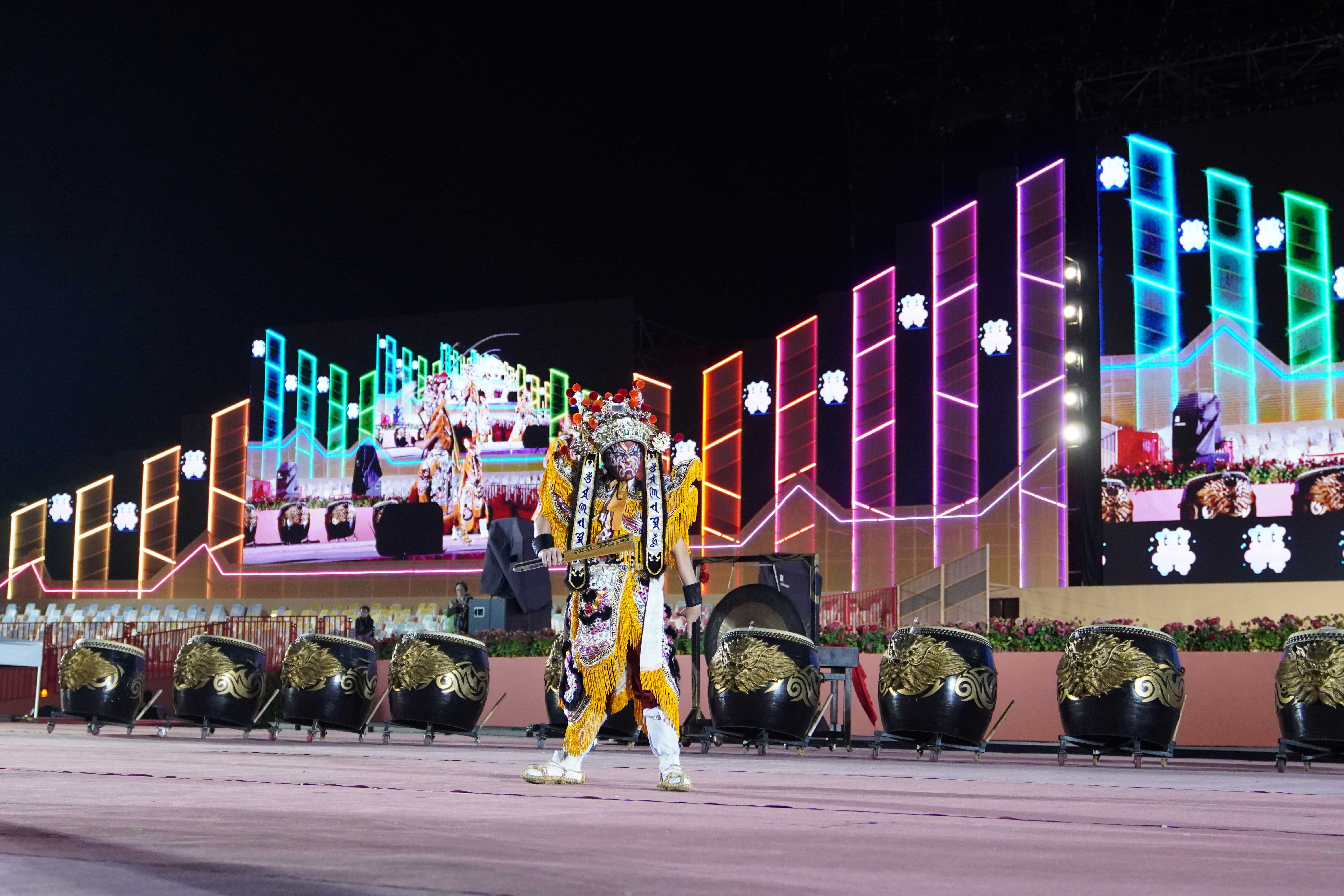 嘉義主場秀「鼓掌乾坤」由九天民俗技藝團與弘興閣掌中劇團跨界共演,融合戲偶敘事與鼓陣節奏,象徵傳統藝陣的薪火相傳與時代創新,彰顯嘉義民俗文化的深度底蘊與世界舞台的可能,讓藝陣精神在光影中持續閃耀。