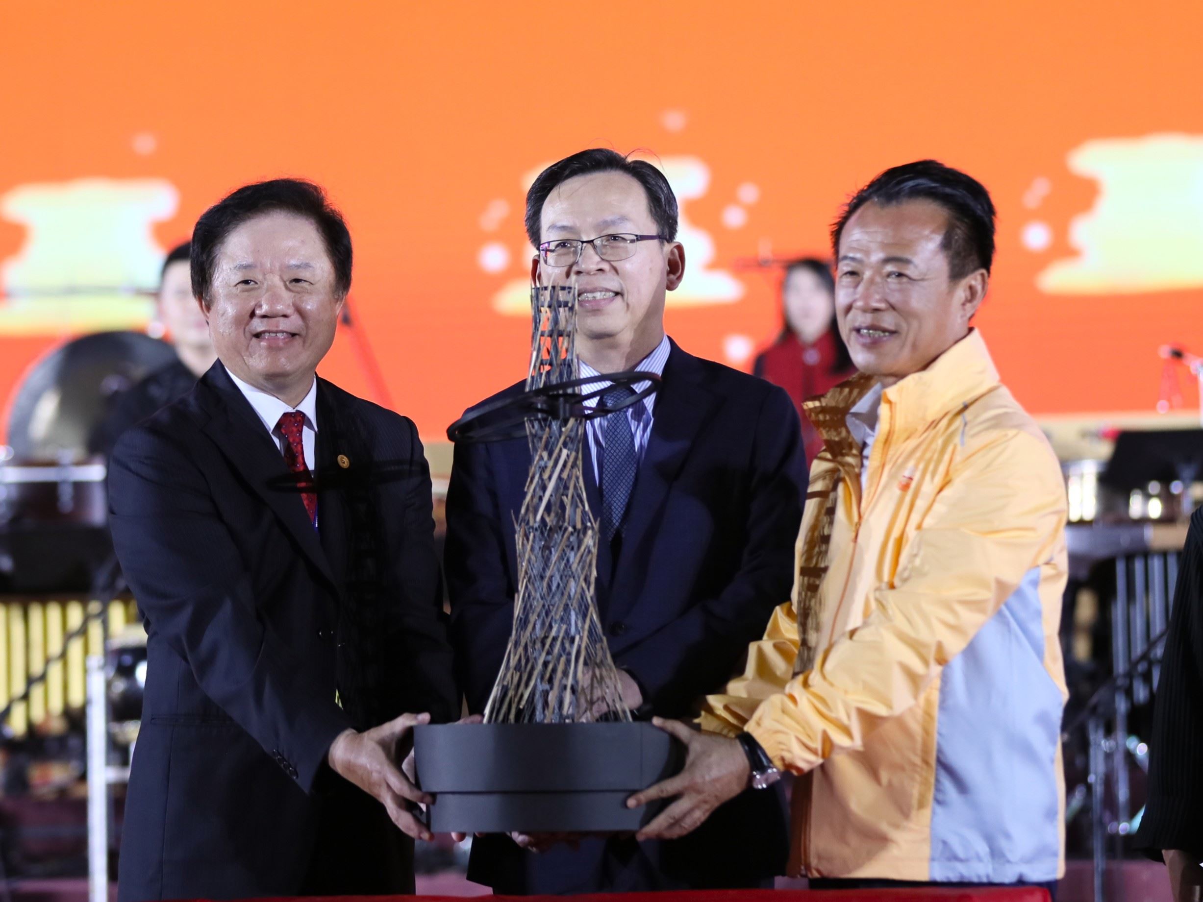 2026台灣燈會將於明(3)日正式開幕,今(2)日晚間先行舉辦主燈贈燈暨啟動儀式。在交通部次長林國顯見證下,中華電信董事長簡志誠將主燈「光沐-世界的阿里山」模型致贈嘉義縣長翁章梁,象徵燈會正式揭開序幕,並祈願活動圓滿順利。