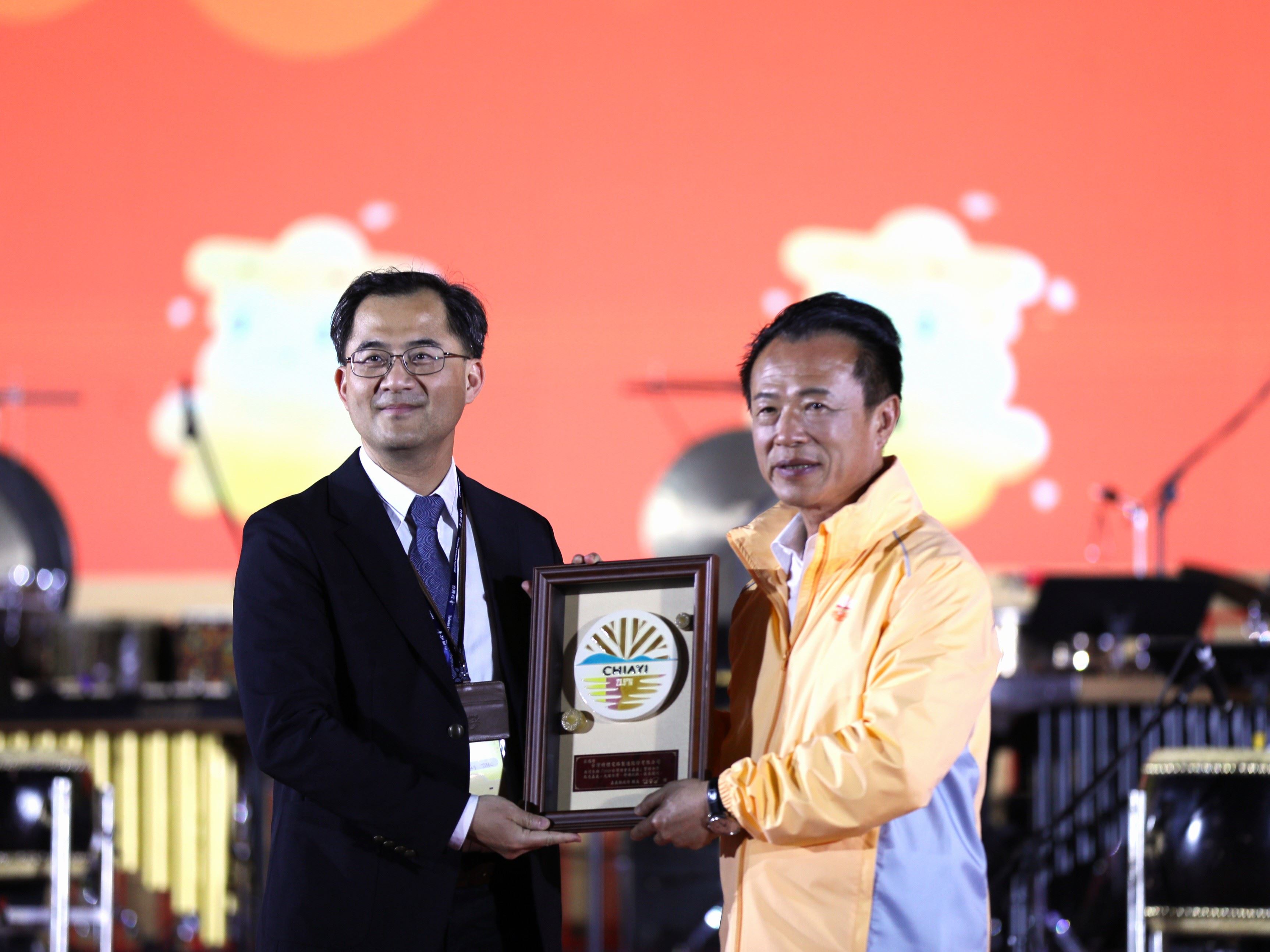 隨後,交通部次長林國顯、嘉義縣長翁章梁、觀光署長陳玉秀、中華電信董事長簡志誠、台灣觀光協會榮譽會長葉菊蘭及台灣觀光協會會長簡余晏共同啟動主燈,進行首次主燈秀展演,璀璨光影映照夜空,為嘉義點亮榮耀時刻。