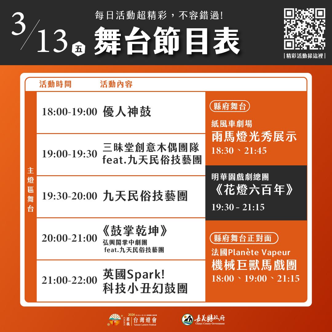 2026 台灣燈會 3月13日精彩活動