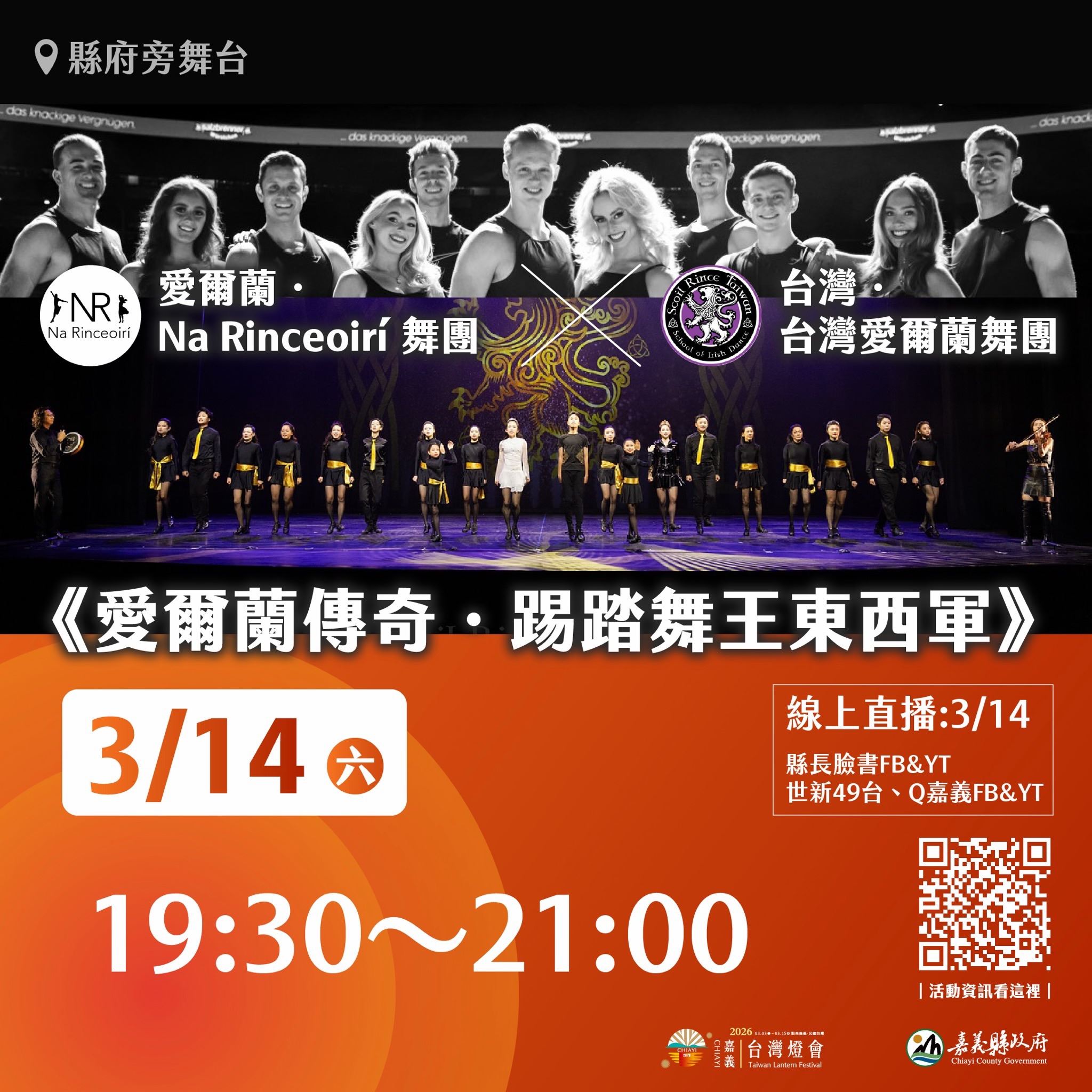 活動說明:愛爾蘭知名舞團「Na Rinceoirí」與「台灣愛爾蘭舞團」同台演出,以愛爾蘭踢踏舞為核心,展現節奏、力量與舞台張力的舞藝交流。