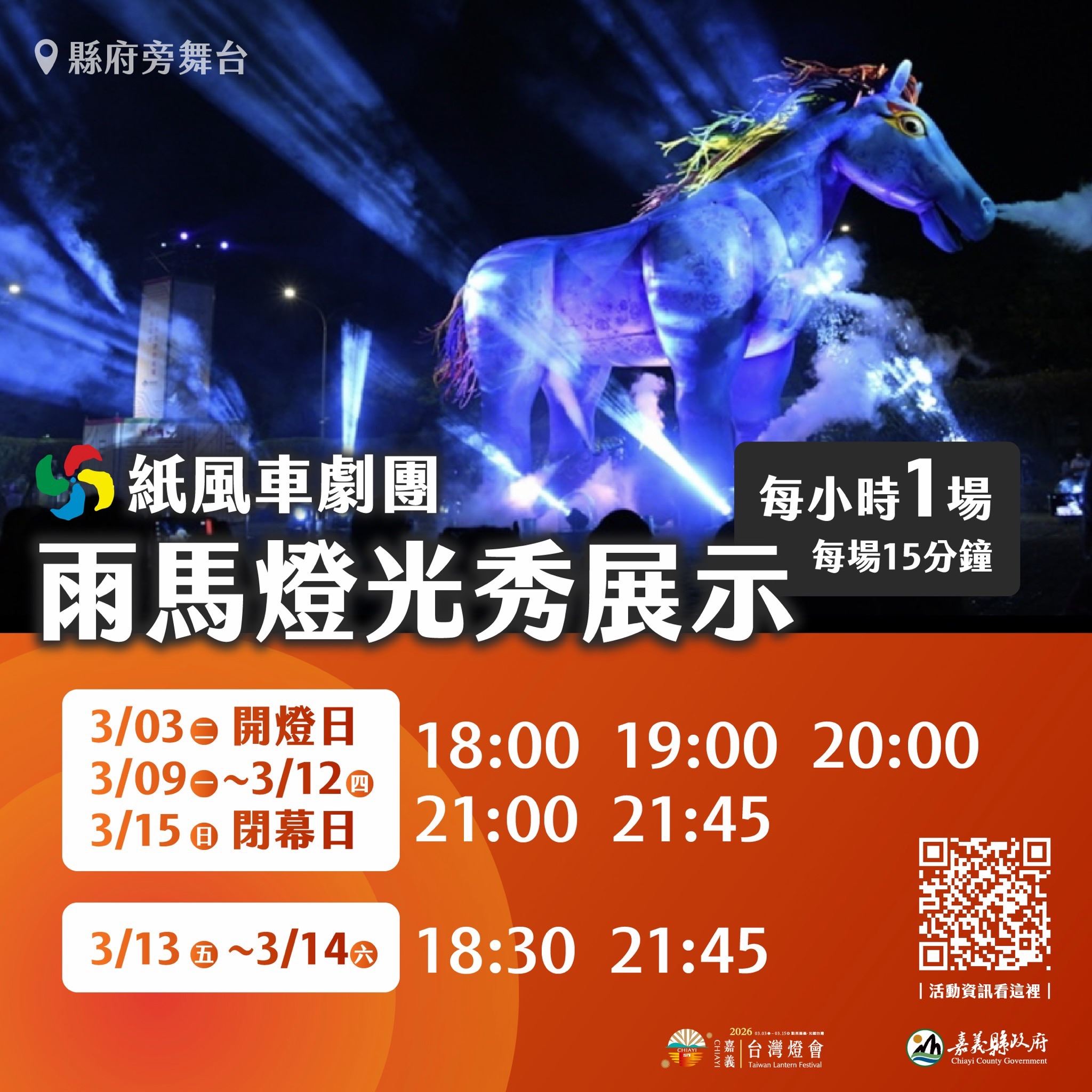 18:00 - 21:15|紙風車|雨馬燈光秀展示|(每場15分鐘)