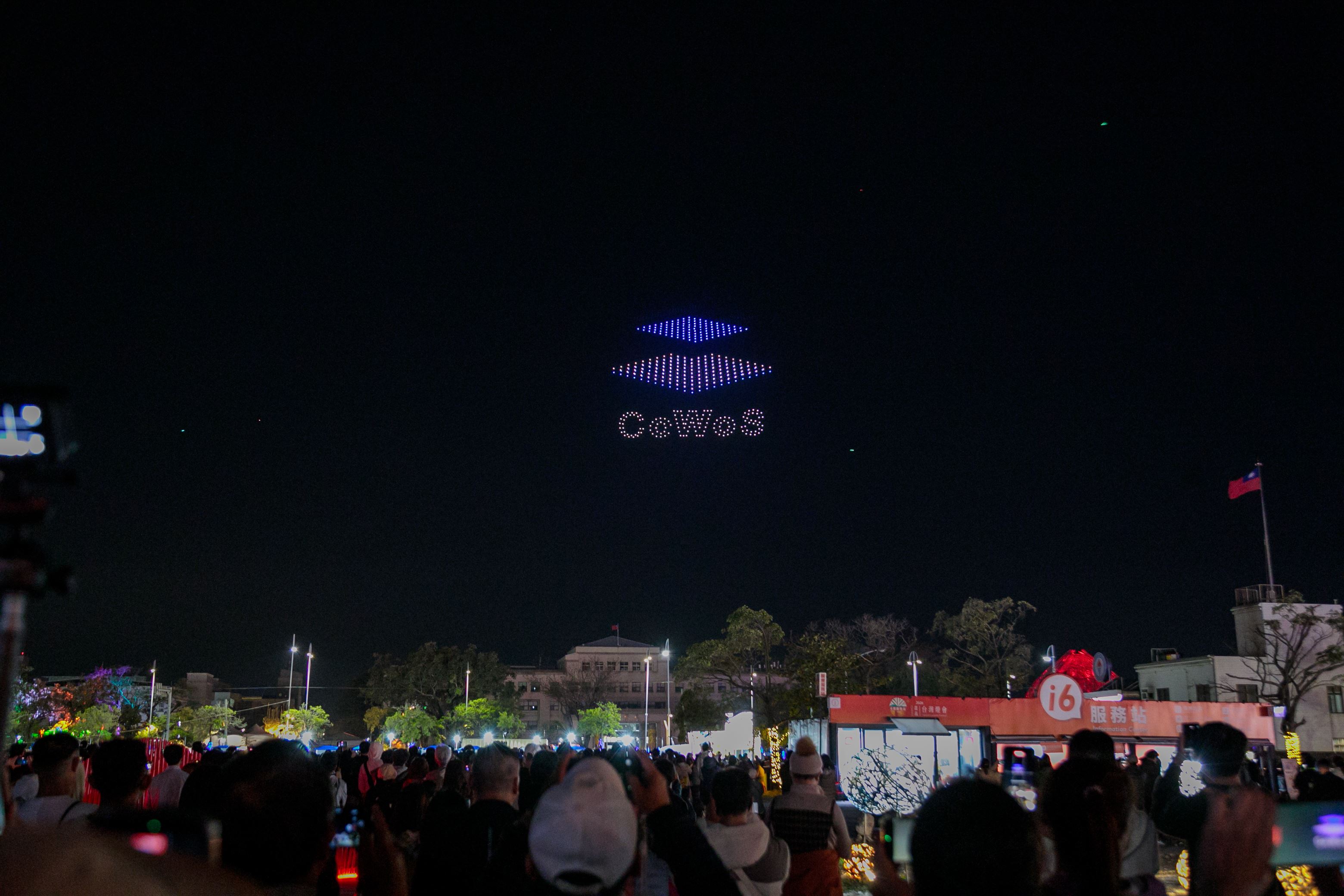 隨後,無人機群飛描繪出全球矚目的先進封裝技術CoWoS,體現嘉義逐步接軌全球AI產業鏈,從農業大縣邁向農工科技大縣;緊接著夜空中出現大型Outlet購物中心意象,這座緊鄰高鐵站的大型商業設施,未來將提供休閒、購物、美食與娛樂的多元體驗,也為城市發展增添新動能。