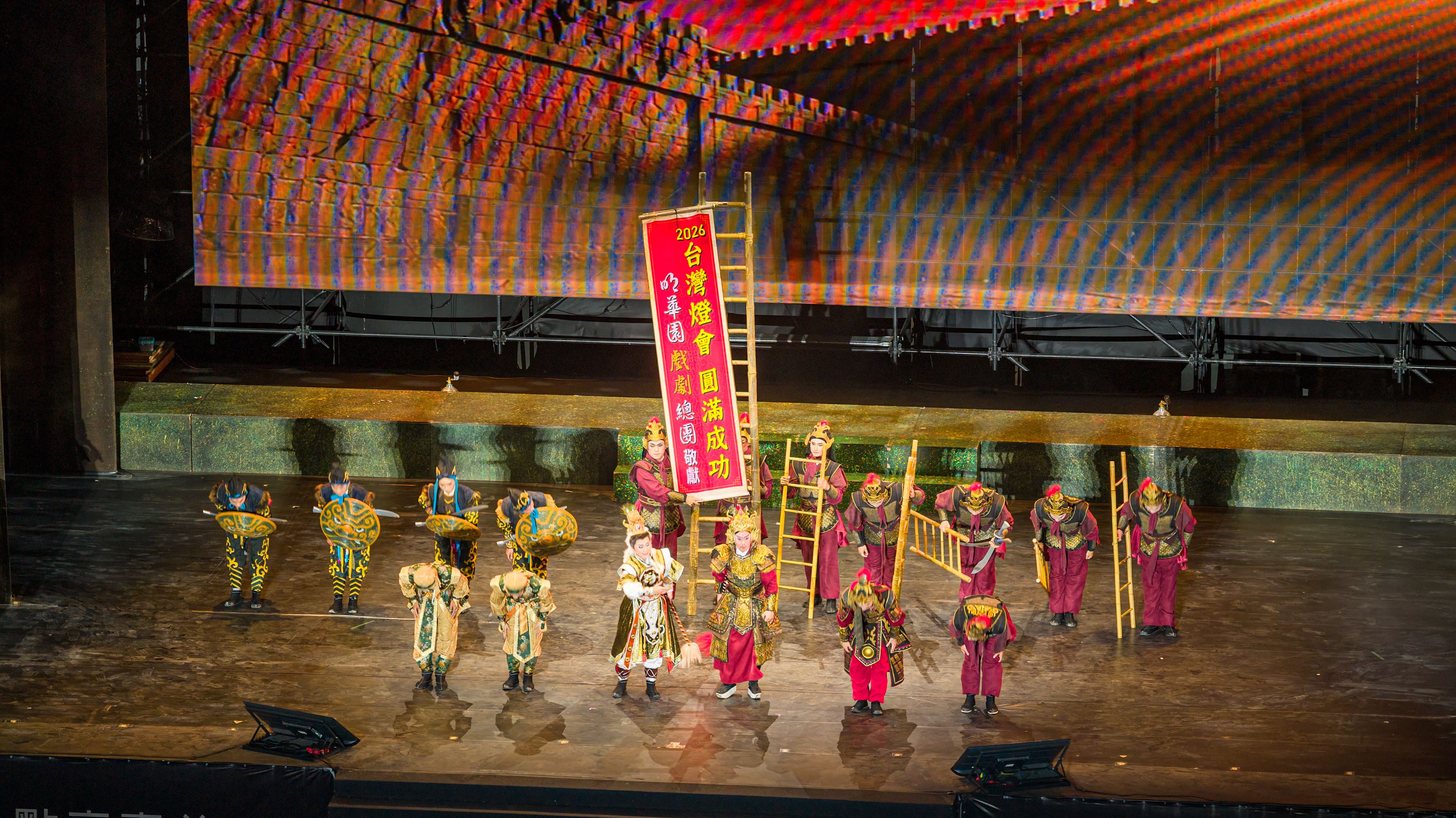 2026台灣燈會倒數3天,精彩節目持續登場!台灣歌仔戲代表團隊——明華園戲劇總團於今(13日)晚演出經典劇碼「花燈六百年」,以傳統戲曲結合現代舞台科技,呈現跨越六百年的花燈文化故事。