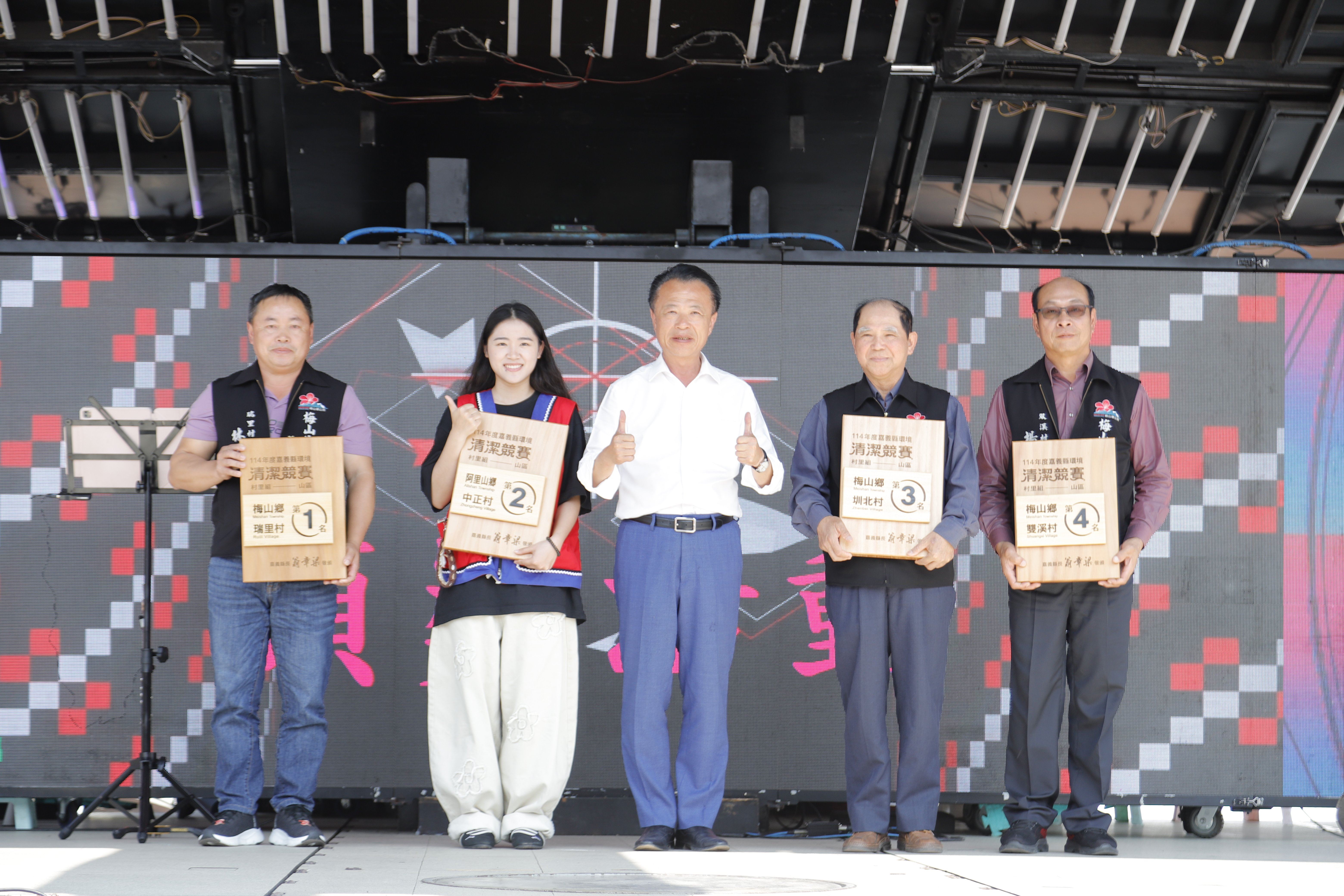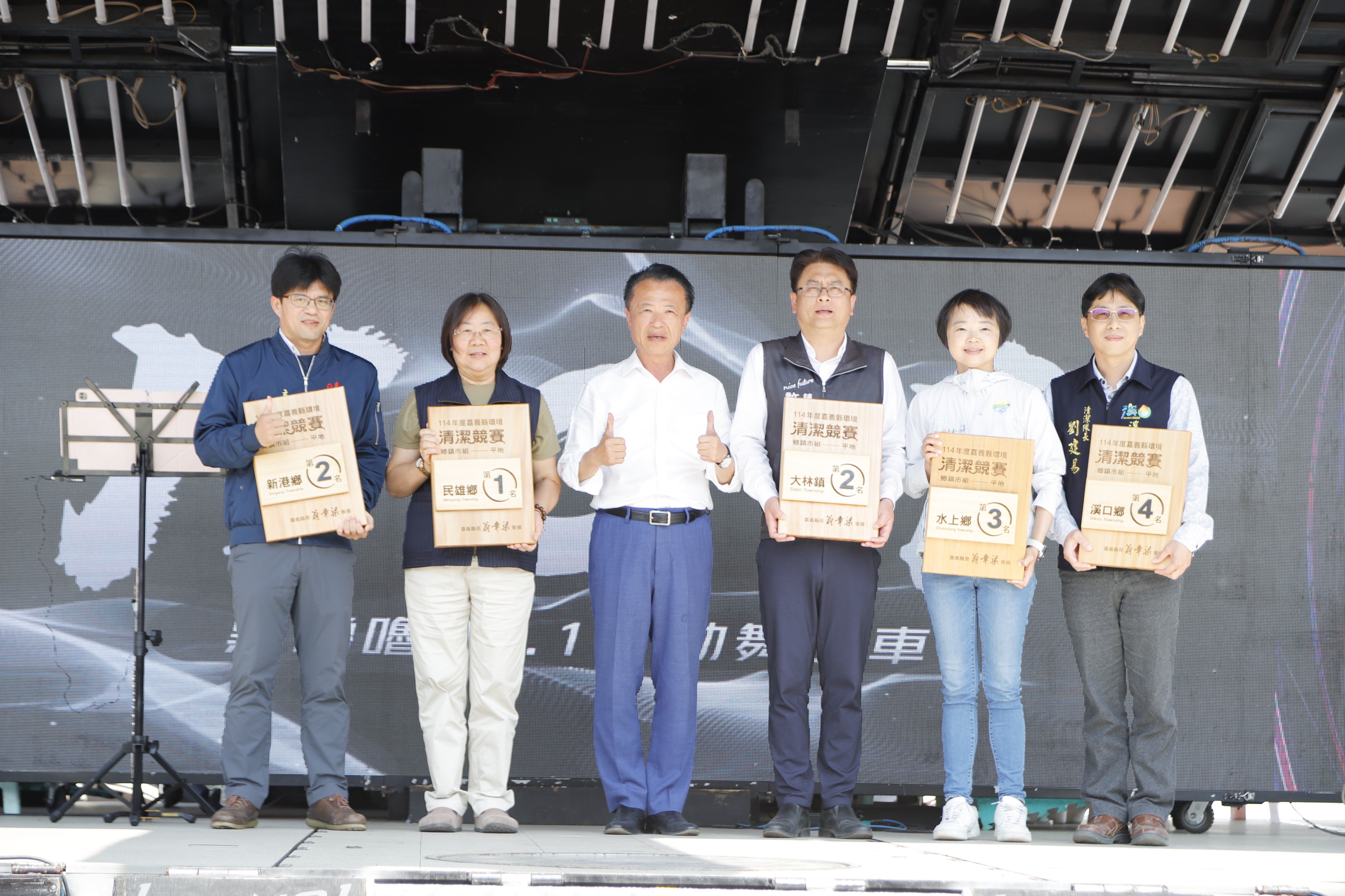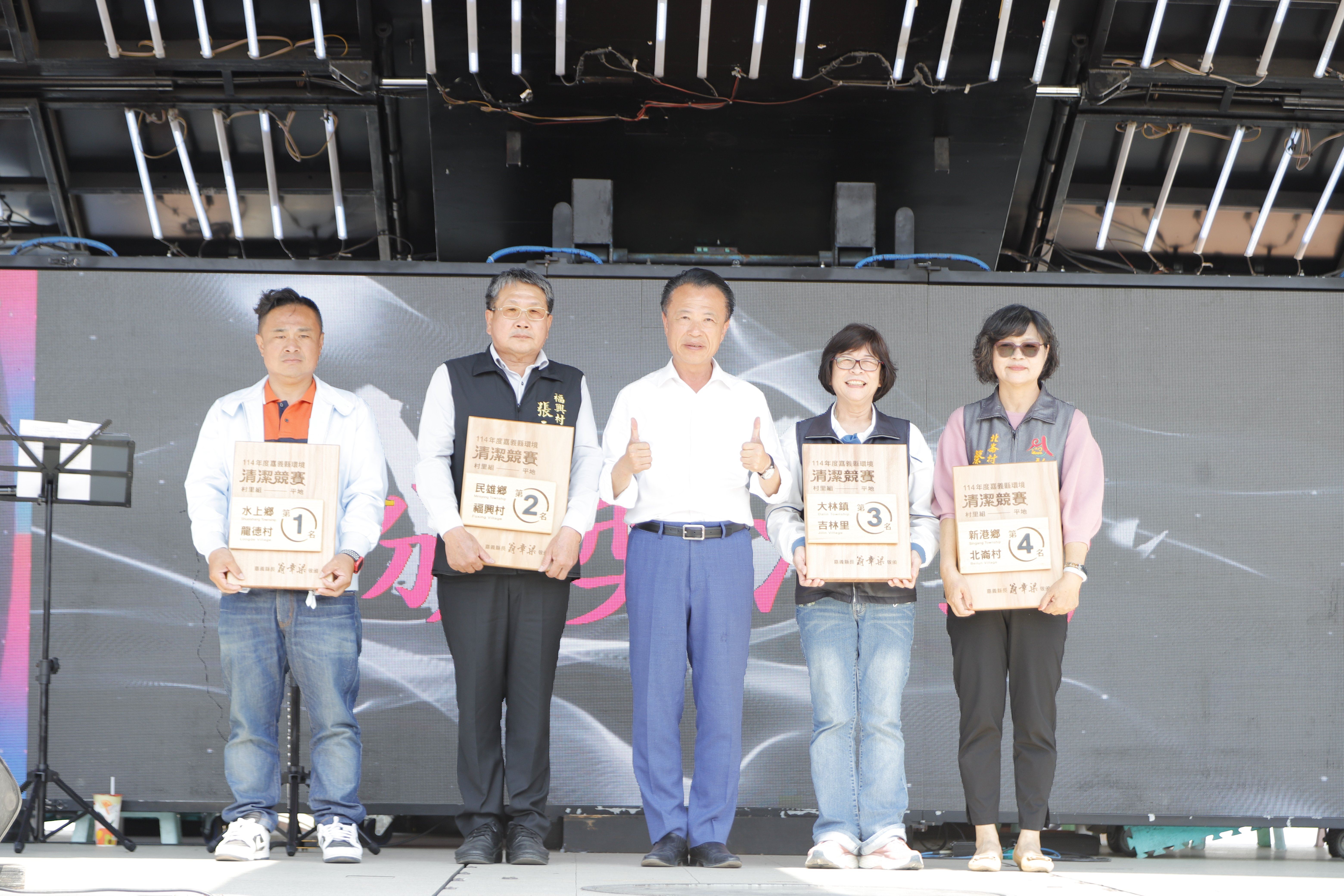 今年競賽成果豐碩,梅山鄉、東石鄉及民雄鄉分別榮獲山區、海區與平地區第一名,獲頒獎金鼓勵;村里組亦有多個社區獲獎,展現地方齊心維護環境整潔的努力成果。