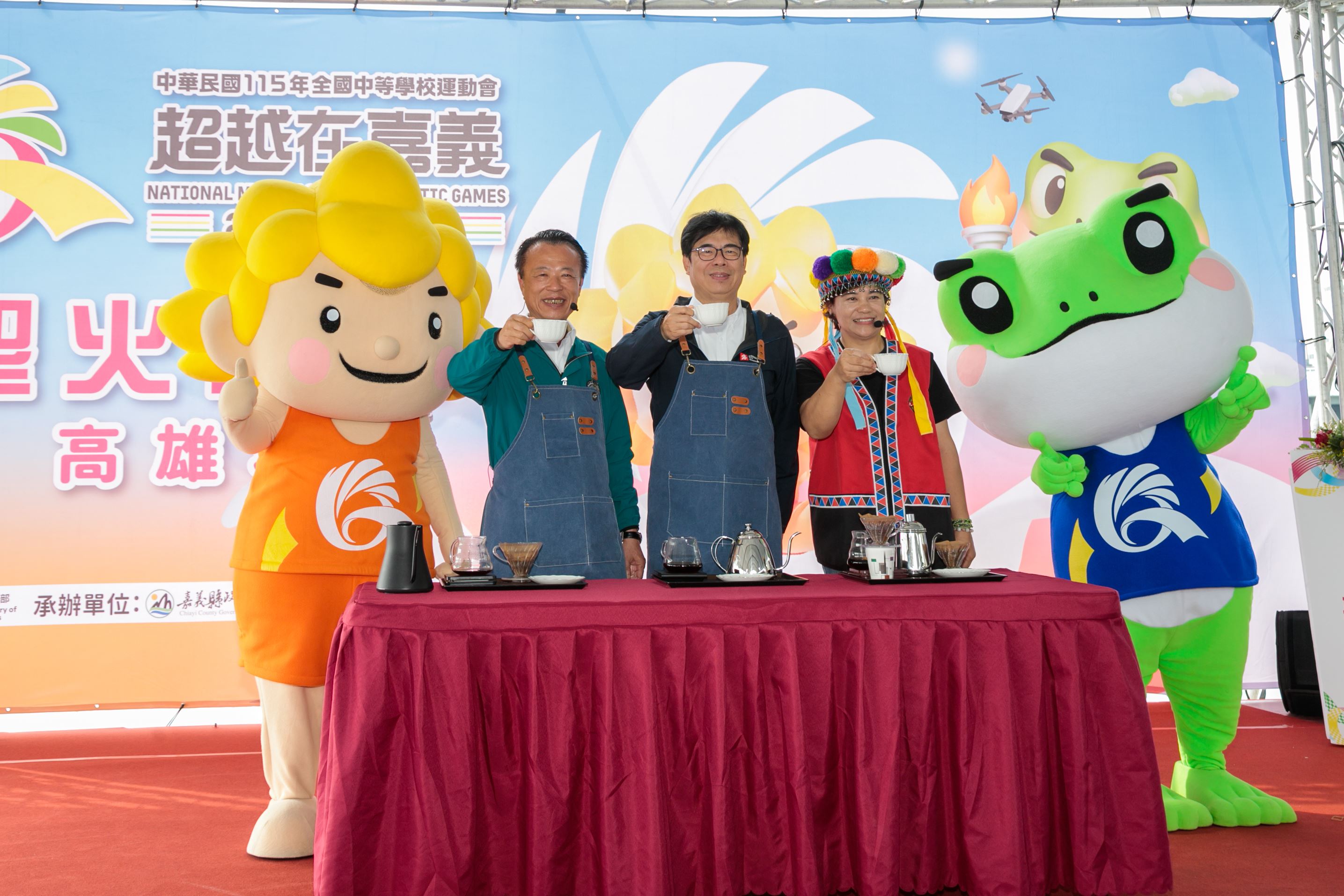 嘉義縣也在現場推廣阿里山精品咖啡與特色農產,翁縣長、陳市長上台手沖咖啡,翁章梁盼所有來嘉義的好朋友,除了比賽外,也可以享受一下嘉義豐富的物產。