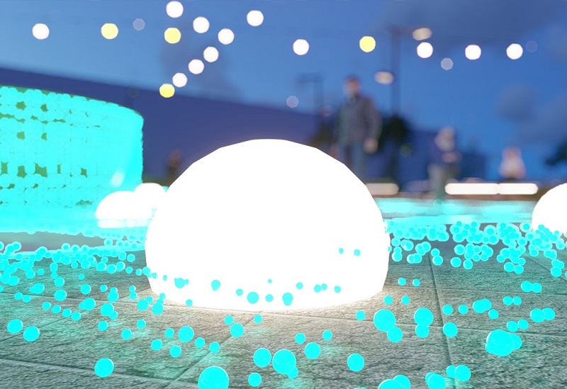 柔らかな光を放つLED球体と光の点が花々のつながりを演出。それは異なる文化が互いに交流し、理解を深め、共生していく姿を象徴しています。夜の光の演出はグラデーションを描く色温度や光の輪、そして揺らめく光線で構成され、「文化の開花」を感じさせる視覚的な雰囲気を創り出します。あたかも一輪一輪の花がそれぞれの民族の言葉や情念をつむいでいるように見えます。庭園の周囲には人工芝と低い白柵が配置され、誰もが歩める親しみやすい庭の風景を創り出しています。来場者はこの作品の中で異なる文化が交わる温もりに触れることができます。