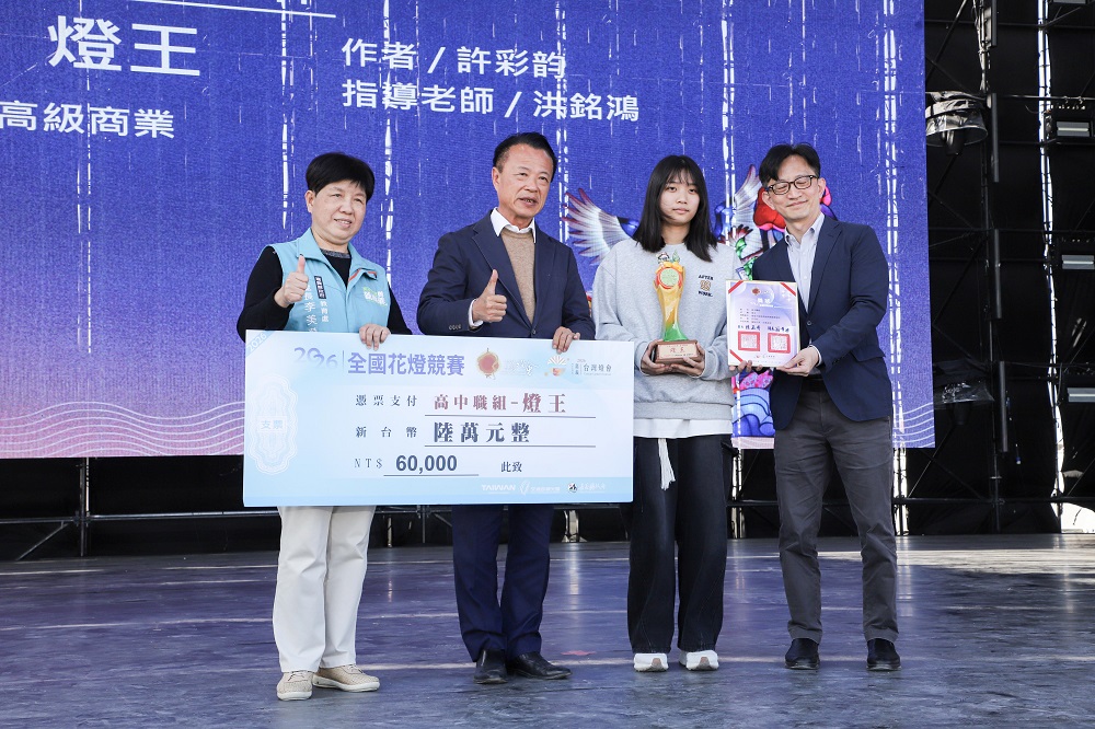 嘉義県政府は本日11日、「2026台湾ランタンフェスティバル in 嘉義」全国ランタンコンテストの表彰式を開催した。翁章梁県長が出席し、受賞者を祝福した。各部門のランタン王や、太保国中の視覚錯視作品「扭頭馬面-馬盯尼」などがSNSで大きな反響を呼び、コンテストエリアはフェスティバルに華やかな彩りを添えた。
