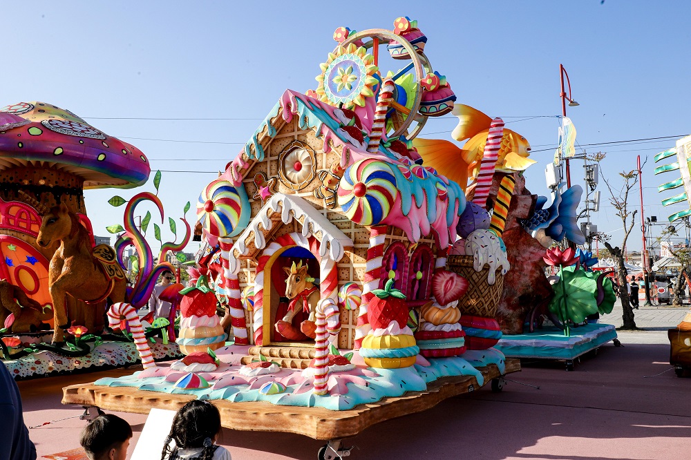 親子部門「カキボウ、波を越えて前へ」(蚵寶破浪向前行)は、嘉義県東石小学校の作品で、「王船」を主要意象とし、海洋を守る精神を象徴する。キャラクターが手にするサッカーとバレーボールは同校の体育伝統を表し、子どもたちの奮闘する姿を表している。