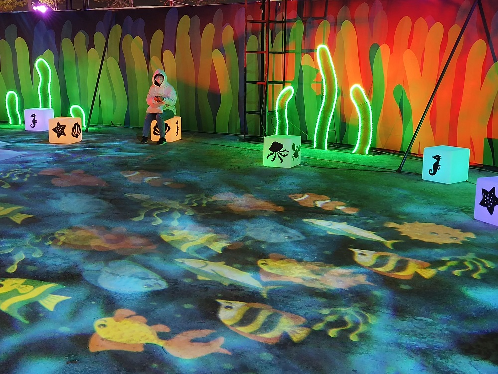台中の林さんは、カキ殻や海洋廃棄物を再利用した大規模な装飾に驚き、その中でも「カキ殻マウンテン」が特に印象的だったと話しました。台湾各地のランタンフェスティバルを撮影してきた人気KOLのモリーは、足元を走り回るカラフルな小魚の演出に大興奮し、「非常に丁寧に作られた素晴らしい展示エリアで、ぜひ皆さんにおすすめしたい」と絶賛しました。