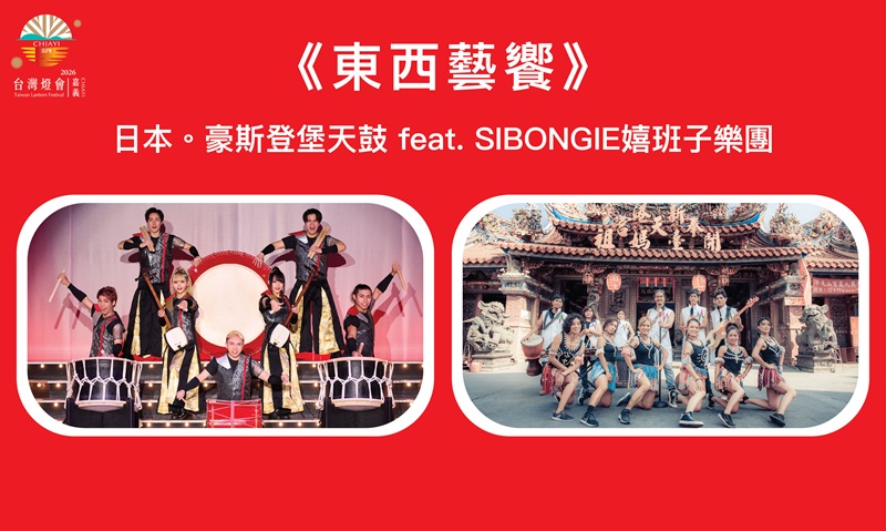 『東西芸饗』は、日本のハウステンボス 天鼓と嘉義のSIBONGIE嬉班子楽団とのコラボレーションによるパフォーマンスです。この太鼓を中心としたプログラムは、東洋の太鼓が持つ迫力とアフリカの太鼓が生み出す野生のリズムの融合により、国、境界、文化を超越した対話と融合の完璧さを披露します。