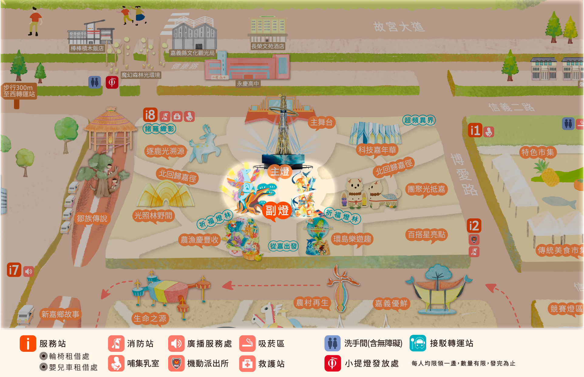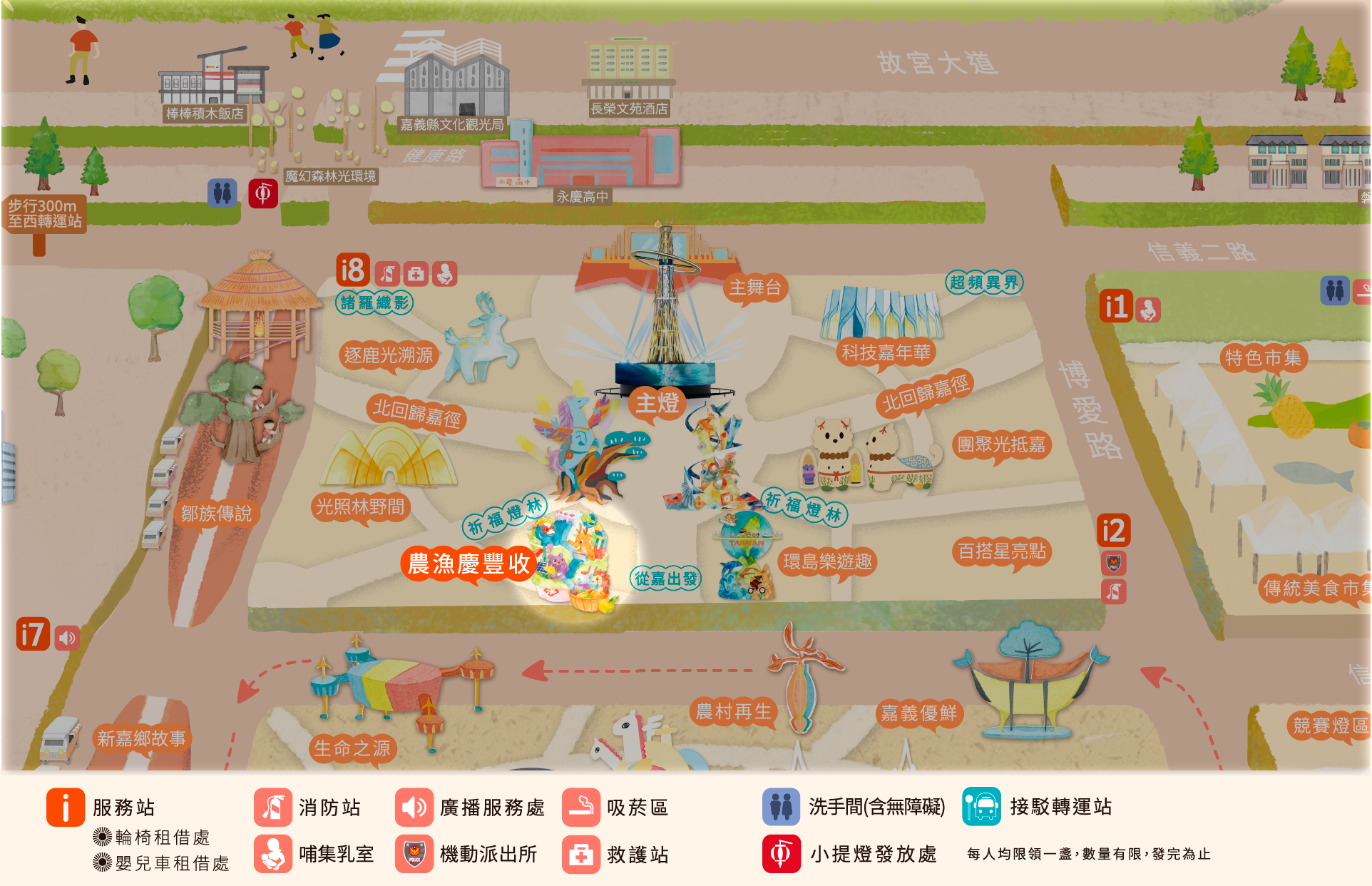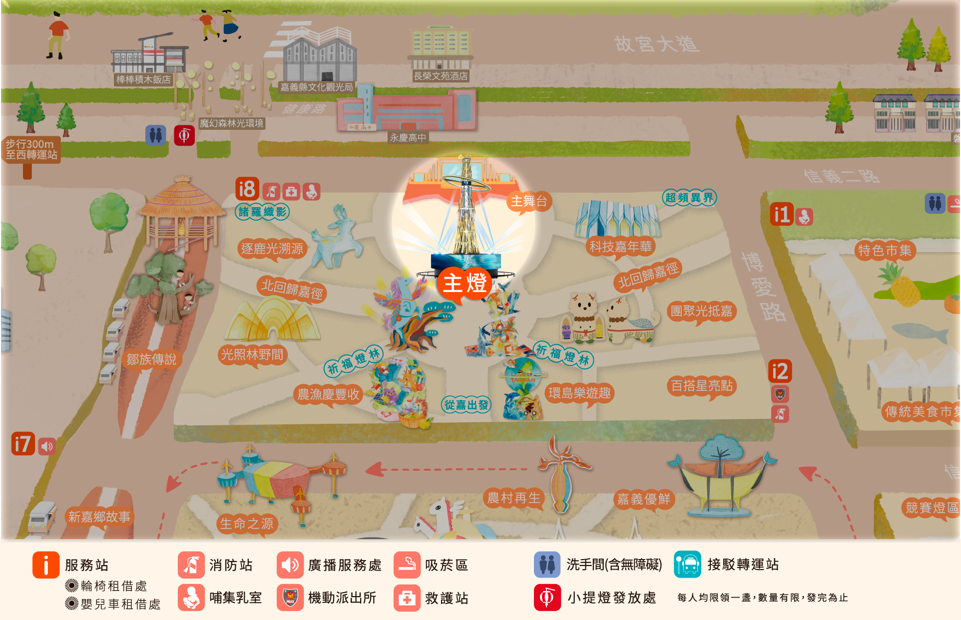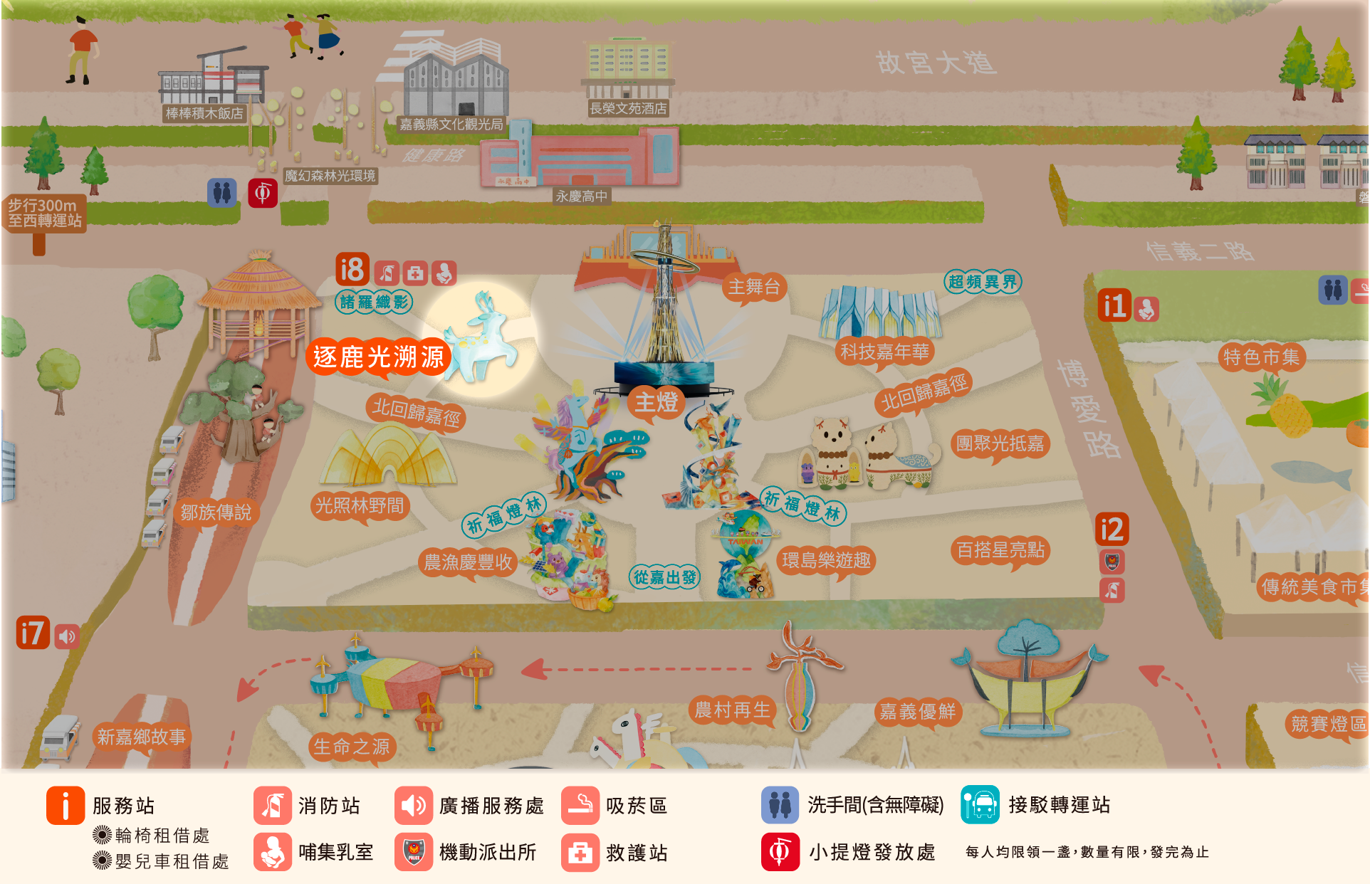 • 本燈區致敬嘉義百年林業史與木藝文化。
