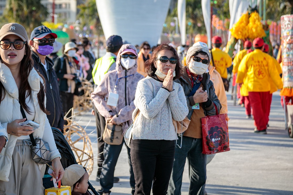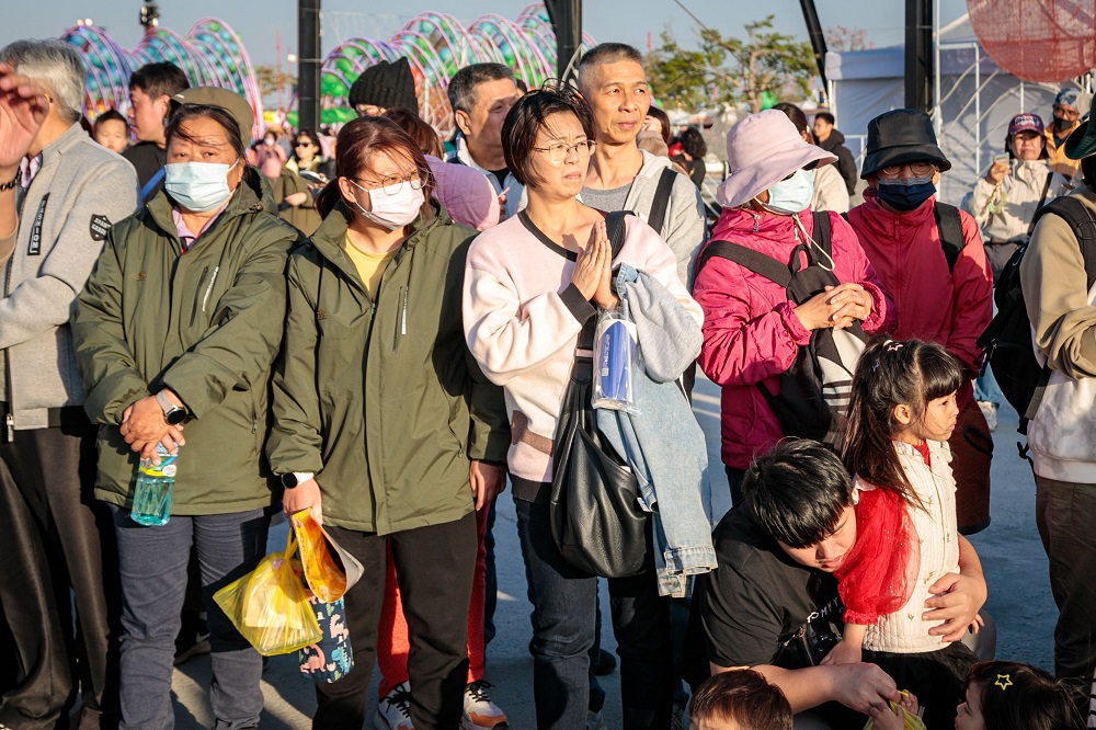 2026 타이완 등불축제 개막 전, 자이현 정부팀은 연이은 비로 인해 행사 진행에 대한 우려가 컸다. 웡장량 현장은 날씨가 좋아지기를 기도하기 위해 여러 사찰을 방문했다. 오후에는 비가 그치고 날씨가 회복되어 등불축제가 순조롭게 진행될 수 있었다. 이에 대한 감사의 뜻으로, 현정부는 신강 봉천궁, 시베이 륙흥궁, 포쯔 패천궁의 마주를 12일 등불축제로 초청했다. 많은 주민들이 마주와 함께 등을 감상하며 두 손을 모아 소원을 빌었다.