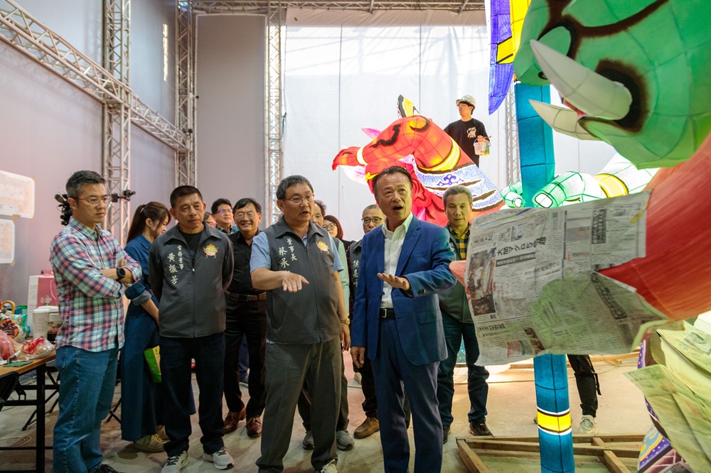 2026 대만 등불 축제는 3월 3일부터 15일까지 성대하게 개최됩니다. 자이현 정부는 문화총회와 협력하여 일본 아오모리에서 전문 네부타 장인을 초청해 현지 창작을 진행합니다. 배천궁의 ‘푸쯔 마쭈’, 천리안·순풍이 장군, 호야를 소재로 대형 네부타 등불을 제작하며, 2월 21일 오후 웡창량 현장은 배천궁 이사장 차이청쭝과 이사회 팀을 전시장에 초대해 제작 과정을 관람했습니다.