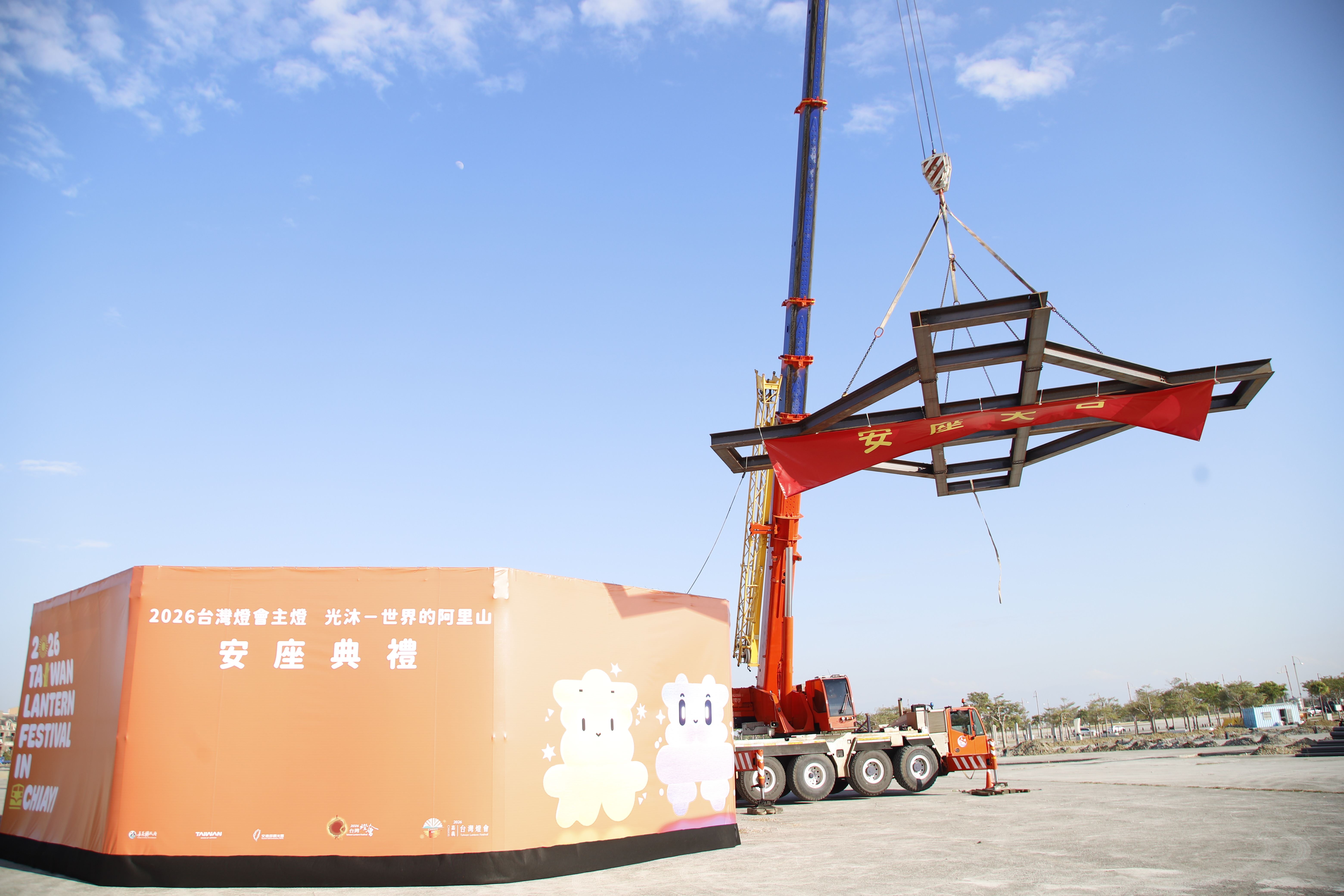 2026 타이완 랜턴 페스티벌은 내년(민국 115년) 3월 3일부터 15일까지 자이현에서 개최된다. ‘메인 전시구’와 ‘현정부 전시구(현정부 앞 광장 및 주변 권역)’ 등 2대 전시구를 마련하며, 메인 랜턴 ‘광목-세계의 아리산’은 오늘(29일) 오후 순조롭게 안좌를 마쳤다. 교통부 관광서장 천위슈, 옹장량 현장, 메인 랜턴 협찬사인 중화전신 등 귀빈들이 안좌 예정지에서 길일을 택해 기복 의식을 올리며, 랜턴 페스티벌 준비의 서막을 열고 안전과 순조로운 진행을 기원했다.